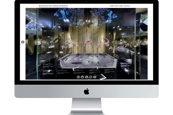 Captured the Bvlgari Tribute to Femininity at The Kremlin, Moscow. Created over 50 high-quality 360-degree images with a custom interface, featuring sections for Magnificent High Jewelry and Bvlgari Icons.